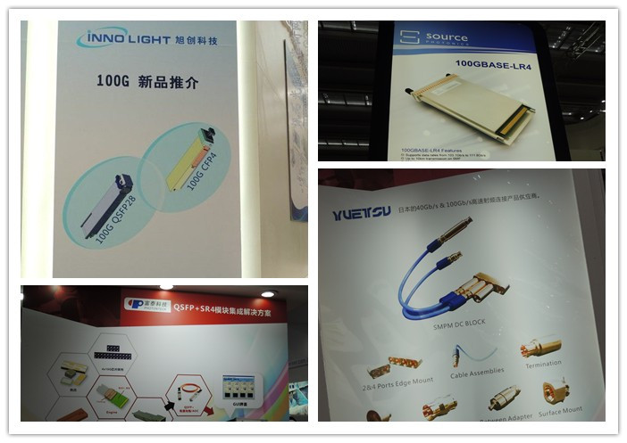 40G的產(chǎn)品今年也被不少模塊商擺出,主推的有40G LR4和SR4 QSFP+,國(guó)內(nèi)除了旭創(chuàng)領(lǐng)先外,其他有源廠商更多是跟隨的腳步,但作為一個(gè)過渡性和可體現(xiàn)技術(shù)實(shí)力的產(chǎn)品大家都還是不甘落后如新易盛。順應(yīng)40G、100G發(fā)展潮流,富泰科技更是推出QSFP+和SR4的模塊解決方案,從芯片到測(cè)試設(shè)備,也是非常領(lǐng)先的系統(tǒng)解決方案,同時(shí)還有凌云推出的代理MultiPhy 100G低成本模塊方案。展會(huì)上還可見一些代理商推出的如日本40G/100G高速射頻連接產(chǎn)品。長(zhǎng)飛推出有源線纜配套解決方案。