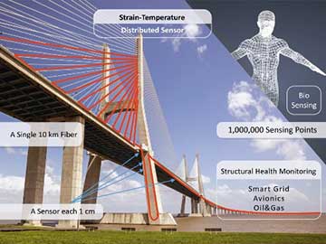 一支西班牙與瑞士聯(lián)合研究團(tuán)隊(duì)設(shè)想將其改良光纖傳感方法應(yīng)用于大規(guī)模的基礎(chǔ)設(shè)施項(xiàng)目和生物醫(yī)學(xué)監(jiān)測(cè)中。(圖片來(lái)源:美國(guó)光學(xué)學(xué)會(huì))