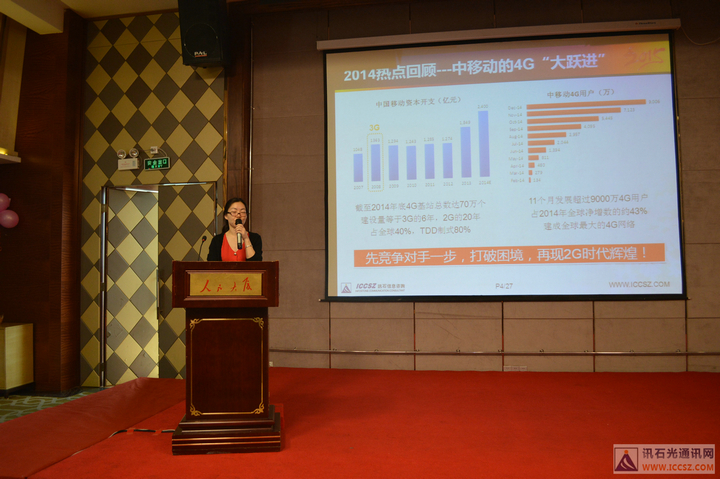 緊接著,訊石高級分析師吳娜為大家?guī)砹恕?014年光通訊市場總結(jié)》的報告,總結(jié)一系列發(fā)生在2014年光通信界的熱點事件和對未來市場的展望,報告詳細解讀了2014年4G的建設(shè)情況,近年來發(fā)展最快的技術(shù)G.fast,數(shù)據(jù)中心的發(fā)展,更有2014年不能忽略得重組并購狂潮,F(xiàn)inisar、JDSU、O-claro等大型廠商都卷入了其中,PLC芯片的大漲價更是讓人瞠目,業(yè)內(nèi)人士預(yù)測此次漲價或會延續(xù)半年左右,但即使價格回落也不會像從前一樣低價了??偟膩碚f,2014年光網(wǎng)絡(luò)市場有人歡喜有人愁,2015年數(shù)據(jù)中心互連將成為最主要的動力。