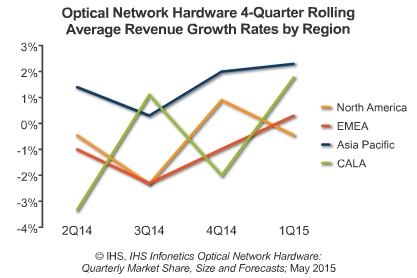 光網(wǎng)絡(luò)市場(chǎng)似乎結(jié)束了低迷;由于美元走強(qiáng),該區(qū)域市場(chǎng)表現(xiàn)好于整體市場(chǎng)。