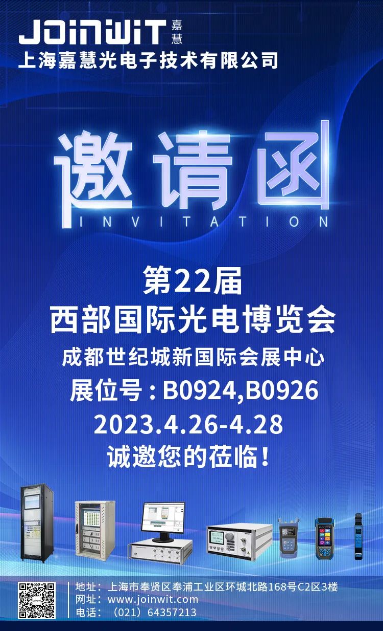 ICC訊 4月26日至4月28日,中國(guó)國(guó)際(西部)光電產(chǎn)業(yè)博覽會(huì)將在成都世紀(jì)城新國(guó)際會(huì)展中心舉辦,本次展會(huì)上海嘉慧光電子技術(shù)有限公司將推出臺(tái)式新款自動(dòng)起偏消光比測(cè)試儀,低偏光源,單多通道偏振消光比等多款保偏產(chǎn)品解決方案。邀您共赴成都西部光博會(huì),上海嘉慧展位號(hào):B0924-B0926,歡迎各位新老客戶(hù)蒞臨指導(dǎo)!