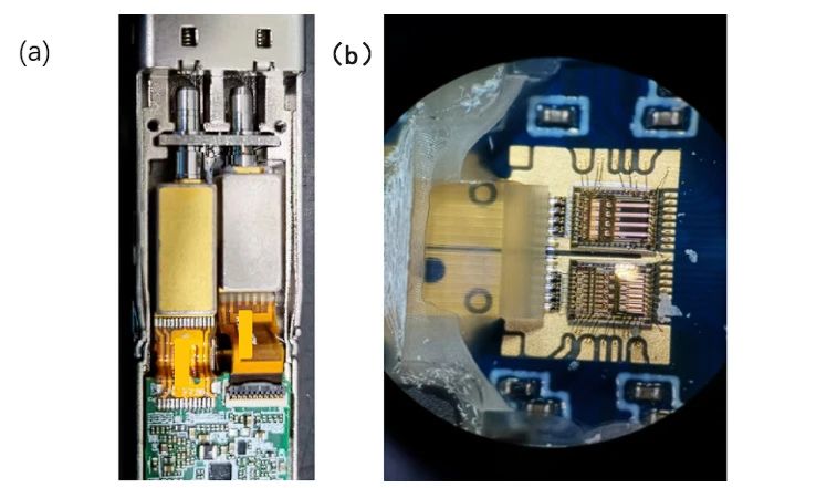 圖4 (a)BOX封裝光模塊實物圖;(b)COB封裝光模塊實物圖