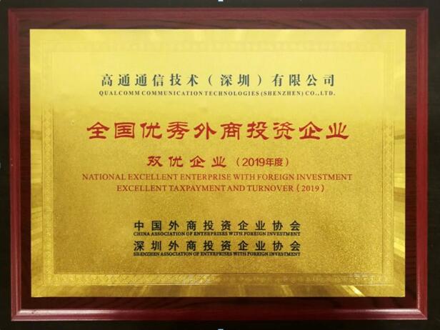 高通通信技術(shù)(深圳)有限公司獲評(píng)“全國(guó)優(yōu)秀外商投資企業(yè)-雙優(yōu)企業(yè)(2019年度)”稱號(hào)