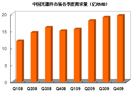中國光器件市場(chǎng)規(guī)模約達(dá)19.5億元人民幣,同比