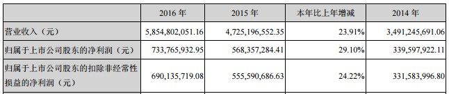 中航光電2016年主要營(yíng)收數(shù)據(jù)