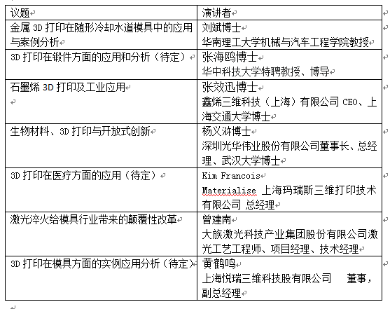 此次峰會繼續(xù)將3D打印技術(shù)的應用和方向作為出發(fā)點,本屆將邀請通快的高層,華南理工大學的劉斌博士、華中科技大學的張海鷗博士、鑫烯三維總經(jīng)理張效迅博士、深圳光華偉業(yè)董事長楊義滸博士、大族激光的曾建南先生、上海悅?cè)鸶笨偨?jīng)理黃鶴鳴、湖南華曙高科等帶來3D打印在工業(yè)方面的最新應用和關(guān)鍵技術(shù)。
