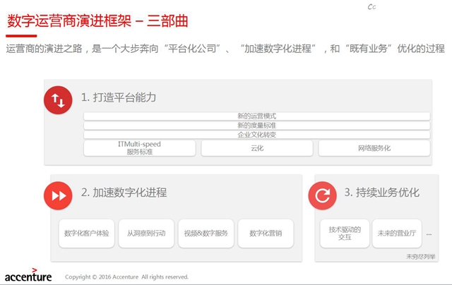 圖:埃森哲運營商數(shù)字化轉(zhuǎn)型路徑三部曲