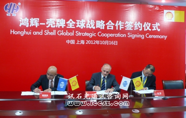 【訊石光通訊咨詢網(wǎng)】2012年10月16日,上海鴻輝和英國殼牌的“鴻輝-殼牌戰(zhàn)略合作簽約儀式”在上海鴻輝公司順利舉辦。鴻輝公司董事長兼總經(jīng)理黃惠良先生及副總經(jīng)理趙繼鴻、趙品根、沈江波與殼牌公司大中華區(qū)銷售總監(jiān)沈堅(jiān)、亞太區(qū)發(fā)展經(jīng)理韋宇波和業(yè)務(wù)發(fā)展經(jīng)理Dierk Sothmann等代表參與了這次簽約儀式。