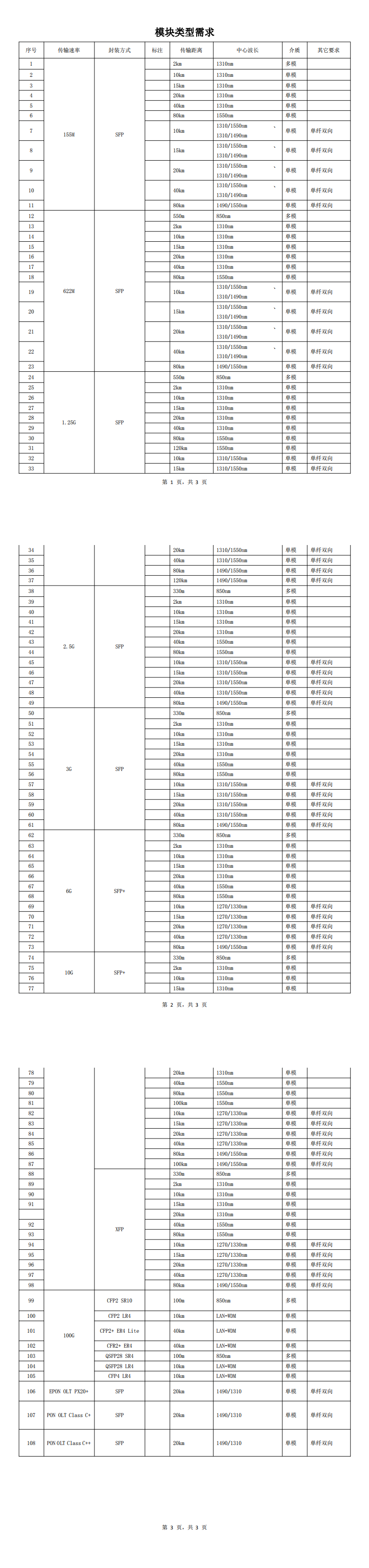 本次采購具體所需光模塊(包括但不限于)類型詳見下圖: