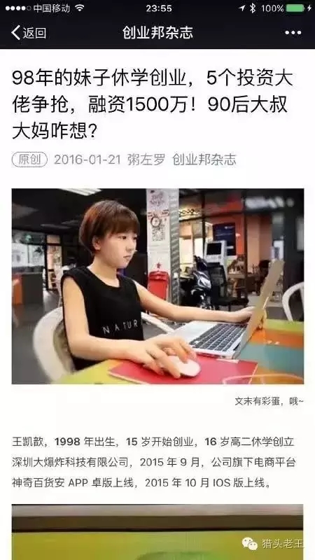 張愛玲的一句“出名要趁早”曾經(jīng)讓無數(shù)年輕人熱血沸騰,98年的王凱歆在全民創(chuàng)業(yè)大潮之下,15歲開始創(chuàng)業(yè),16歲就拿到天使投資,未成年就被媒體冠上了“商業(yè)天才”的名號,事實是一個人所處的位置越矚目,對一個人性格和能力的綜合考驗就會越大。