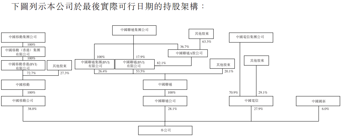 招股書同時顯示,中國移動、中國聯(lián)通、中國電信和中國國新為中國鐵塔股東。其中中國移動持股38%,中國聯(lián)通持股28.1%,中國電信持股27.9%,中國國新持股6.0%。