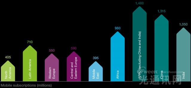 從2016年到2022年,中東和非洲地區(qū)將從擁有大多數(shù)GSM/EDGE專用用戶的區(qū)域,過渡到WCDMA/HSPA以及LTE用戶占比80%的地區(qū)。