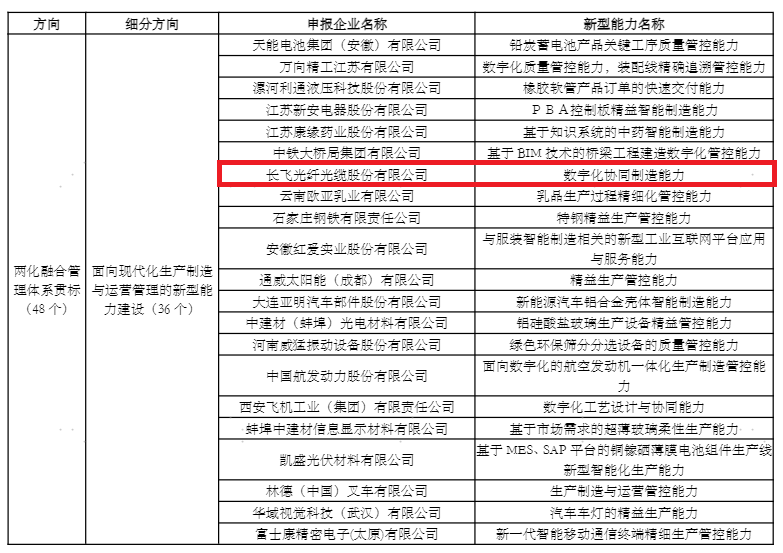 ICC訊 為深入貫徹落實《國務(wù)院關(guān)于深化制造業(yè)與互聯(lián)網(wǎng)融合發(fā)展的指導意見》、《國務(wù)院關(guān)于深化“互聯(lián)網(wǎng)+先進制造業(yè)”發(fā)展工業(yè)互聯(lián)網(wǎng)的指導意見》,根據(jù)《工業(yè)和信息化部辦公廳關(guān)于組織開展2020年制造業(yè)與互聯(lián)網(wǎng)融合發(fā)展試點示范項目申報工作的通知》(工信廳信發(fā)函〔2020〕240號),經(jīng)企業(yè)申報、地方推薦、專家評審等環(huán)節(jié),形成了2020年制造業(yè)與互聯(lián)網(wǎng)融合發(fā)展試點示范名單。長飛光纖光纜股份有限公司(以下簡稱“長飛公司”,股票代碼:601869.SH、06869.HK)以“數(shù)字化協(xié)同制造能力”入選工業(yè)和信息化部2020年制造業(yè)與互聯(lián)網(wǎng)融合發(fā)展試點示范名單,是長飛公司智能制造與工業(yè)互聯(lián)網(wǎng)融合發(fā)展的新里程碑。
