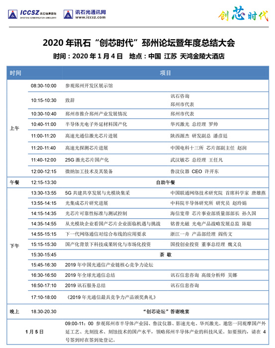 會議名稱:《2020年訊石“創(chuàng)芯時代”邳州論壇暨年度總結(jié)大會》