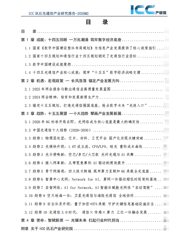 ICC訊石《中國(guó)光通信發(fā)展十大趨勢(shì)(2026-2030)》為企聯(lián)薈會(huì)員專享!歡迎加入訊石企聯(lián)薈,獲取完整版報(bào)告及更多會(huì)員專屬資源。請(qǐng)聯(lián)系:0755-82960080。