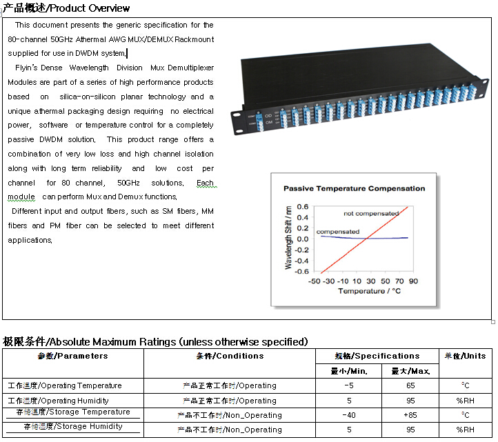飛宇供應:Flyin 50G 80 channel Athermal AWG