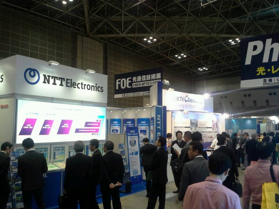 今年FOE在Tokyo 的Bigsite convention center 舉行。據(jù)現(xiàn)場參展的同星光電何總介紹,本次展會參展商來自中國大陸比起OFC少了很多,相對而言臺灣廠商到場的很多。日本各光通信產(chǎn)業(yè)有關的本土大公司都是以高格調亮相。比如NTT、NEC、 Sumitomo、 Fujikura、Mitsubishi、Hitach 等都有展示具有引導行業(yè)的技術實力的展臺,并且很多公司都有LiveShow。