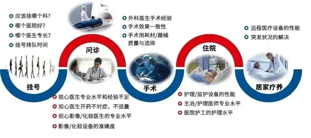 從上圖可以看出,我們看病的痛點幾乎存在于去醫(yī)院就醫(yī)的所有關(guān)鍵流程中,從一開始的掛號到最后可能的住院和居家療養(yǎng)。其中一個關(guān)鍵原因是由于醫(yī)療信息的不對稱,病人只能依靠于醫(yī)生的建議。從診斷,包括影像和化驗,到用藥,到手術(shù),包括手術(shù)器材的選擇以及最后的住院護理和居家護理治療的所有環(huán)節(jié),幾乎無一不是唯醫(yī)生馬首是瞻。除去一些客觀因素,醫(yī)生的專業(yè)水平,包括其醫(yī)德素養(yǎng)幾乎是病人能否得到有效治療的關(guān)鍵所在。