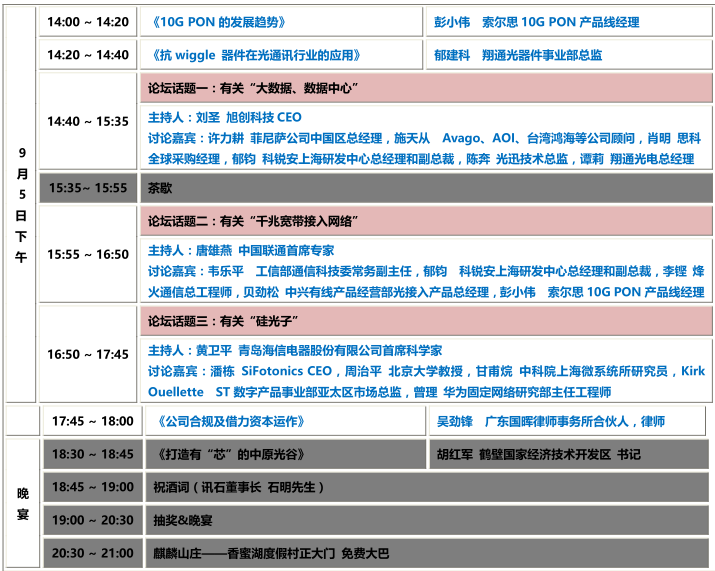 三大論壇話題緊跟行業(yè)熱點,并邀請到行業(yè)眾多知名專家學(xué)者與名企高管壓陣,信息量十足,含金量極高。話題一有關(guān)“大數(shù)據(jù)、數(shù)據(jù)中心”,由旭創(chuàng)科技CEO劉圣主持;話題二有關(guān)“千兆寬帶接入網(wǎng)絡(luò)”,由中國聯(lián)通首席專家唐雄燕主持;話題三與時下最熱門的“硅光子”相關(guān),由青島海信電器股份有限公司首席科學(xué)家黃衛(wèi)平主持。各個論壇話題的討論嘉賓也是來頭不小,并且身在現(xiàn)場的您若有疑問可隨時提出并與大咖共同討論,相信熱烈的氛圍、精彩的發(fā)言一定能讓各位參會人員融入其中,回味無窮!