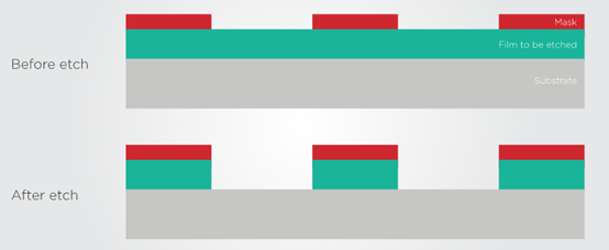 3. 蝕刻:在光阻上 "打印 "出圖案后,就需要去除(或蝕刻)部分半導(dǎo)體材料,以便將圖案從光阻上轉(zhuǎn)移到晶圓片上。有幾種技術(shù)可以用來蝕刻材料。