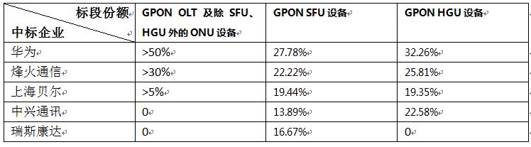 表 中國移動GPON和EPON設(shè)備集中采購中標(biāo)結(jié)果