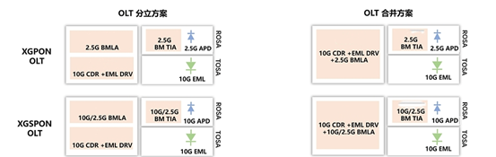 為滿足PON市場(chǎng)的不同應(yīng)用需求,米芯科技推出了分立和合并的芯片方案供客戶靈活選擇: