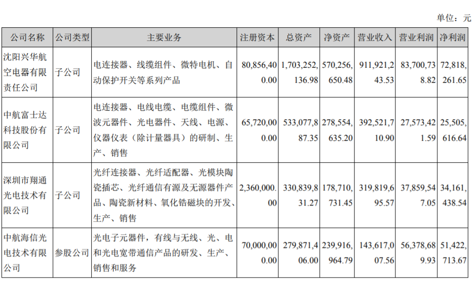 2018年度中航光電主要子公司及對(duì)公司凈利潤(rùn)影響達(dá)10%以上的參股公司情況如下圖: