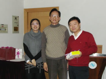 一等獎獲得者愛沃富總經理唐明欣(右)與陳教授、cathy合影 |