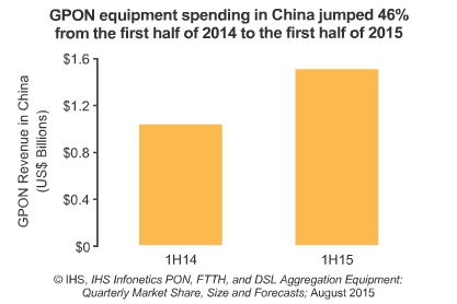 PON設(shè)備開支在2Q15實(shí)現(xiàn)了同環(huán)比增長,IHS預(yù)計(jì)2015年全球