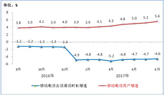 圖6 2016-2017年8月移動電話用戶和通話量增幅比較
