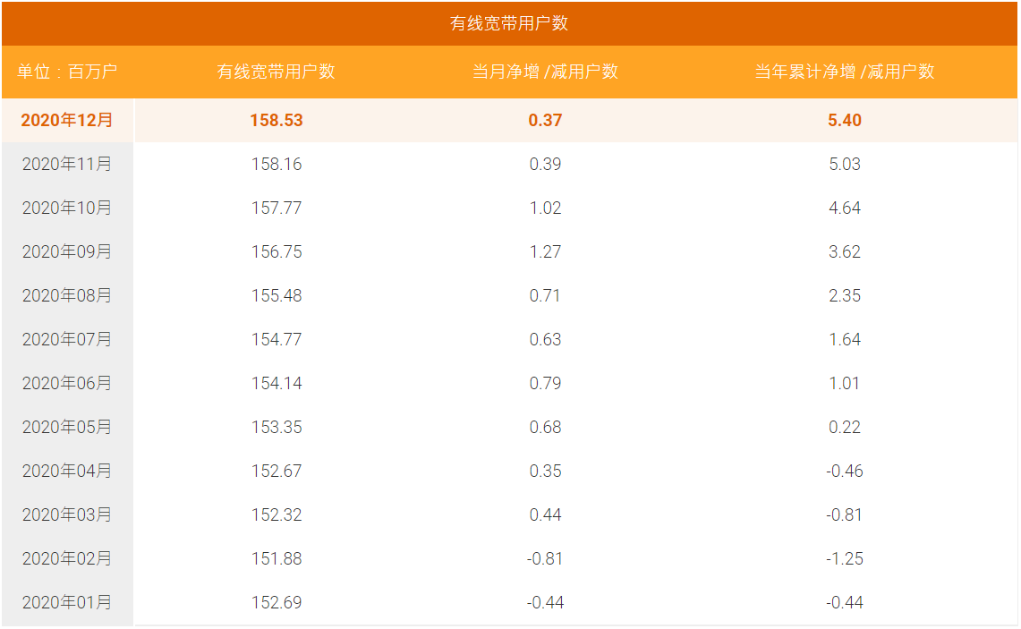 有線寬帶業(yè)務(wù)方面,當(dāng)月,中國(guó)電信有線寬帶用戶數(shù)凈增37萬(wàn)戶,全年有線寬帶用戶累計(jì)凈增540萬(wàn)戶,有線寬帶累計(jì)用戶數(shù)1.5853億戶。固定電話業(yè)務(wù)方面,當(dāng)月中國(guó)電信固定電話用戶數(shù)凈減9萬(wàn)戶,固定電話累計(jì)用戶數(shù)1.0788億戶。