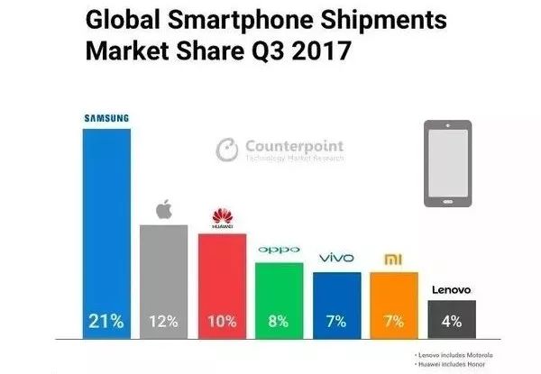 最新數(shù)據(jù)顯示,中國手機市場中前五分別是華為、OPPO、vivo、小米、蘋果。三星已被擠出前五,蘋果也已退居第五。而全球市場中,華為與蘋果僅2%的市場差值。