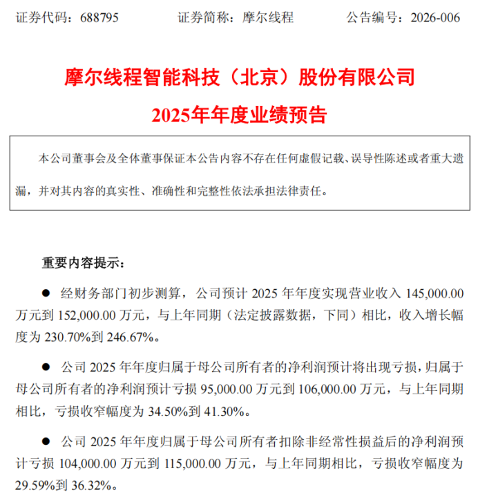 ICC訊 2026年1月22日,摩爾線程智能科技(北京)股份有限公司(證券代碼:688795,以下簡(jiǎn)稱:“摩爾線程”或“公司”)發(fā)布2025年年度業(yè)績(jī)預(yù)告。