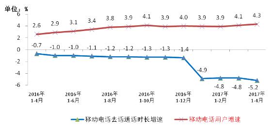 圖6 2016-2017年4月移動電話用戶和通話量增幅比較