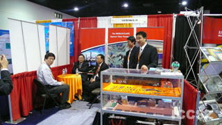 本次展會(huì)WTD展出公司新近研發(fā)成功的40/80公里DWDM XFP 10Gbps光模塊產(chǎn)品。據(jù)現(xiàn)場(chǎng)人員介紹,該產(chǎn)品采用DWDM-rated EML激光器和APD探測(cè)器,產(chǎn)品規(guī)格符合SONET OC-192、SDH STM 64以及10GBASE標(biāo)準(zhǔn),兼容10G光纖通道(FC)標(biāo)準(zhǔn)。產(chǎn)品完全遵循XFP MSA version 4.5協(xié)議,功耗小于3.5W,具備熱插拔的光學(xué)和電接口,傳輸距離分別為40公里和80公里,同時(shí)還滿足RoHS要求。目前該產(chǎn)品已可提供樣品。
