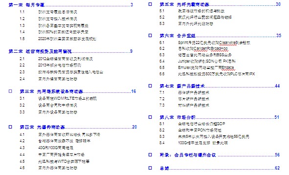 器件商部分:國外器件商營收環(huán)比都有所增長,同比多下滑。臺灣器件商從11月份開始進入淡季,但多家公司維持高檔營收,淡季不淡,并且看好明年。國內(nèi)40G開始應(yīng)用,100G蓬勃發(fā)展,但要形成規(guī)模還須待時日。中國廠商開始角逐芯片市場,光迅與WTD合并落下帷幕,新公司資產(chǎn)24億元。
