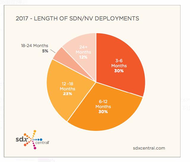回顧SDN的發(fā)展歷史,實(shí)際上真正的起步發(fā)展也就這幾年。所以SDN的市場(chǎng)還是相對(duì)年輕。根據(jù)SDxCentral的2017 Network Virtualization Report[7], 大部分(83%)的SDN部署時(shí)間都很短。只有12%的用戶使用SDN超過(guò)2年。