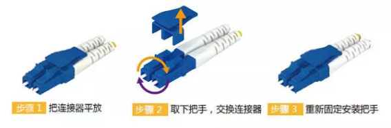 據(jù)億源通展臺(1B61)工作人員耐心介紹,實際產(chǎn)品比傳統(tǒng)款按壓解鎖區(qū)域多出10.1mm,只需同時將兩個光纖連接器的插頭相互調(diào)換就可輕松快速地實現(xiàn)極性轉(zhuǎn)換,極易操作。