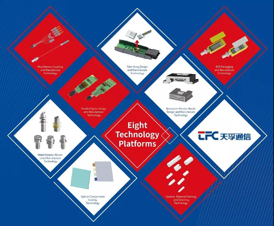 天孚通信將在展會(huì)上展示Mux/Demux耦合制造技術(shù)、FA光纖陣列設(shè)計(jì)制造技術(shù)、BOX封裝制造技術(shù)、并行光學(xué)設(shè)計(jì)制造技術(shù)、納米級(jí)精密模具設(shè)計(jì)制造技術(shù)、光學(xué)元件鍍膜技術(shù)、金屬材料微米級(jí)制造技術(shù)、陶瓷材料成型燒結(jié)技術(shù)八大核心技術(shù)平臺(tái)。