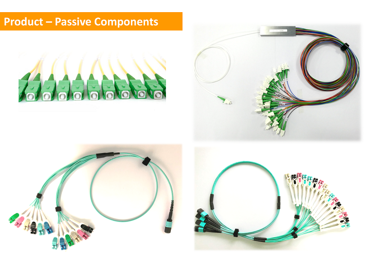主要產(chǎn)品有:光模塊 光纖跳纖 MPO/MTP PLC分路器 尾纖 適配器 快速連接器 終端盒等