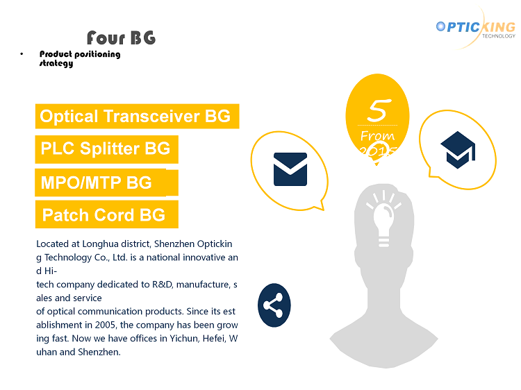 深圳市歐博凱科技有限公司(簡(jiǎn)稱歐博凱)是位于深圳市龍華區(qū)的一家國(guó)家級(jí)創(chuàng)新型高新技術(shù)企業(yè),是集光通信產(chǎn)品研發(fā)、制造、銷售和服務(wù)為一體的供應(yīng)商,歐博凱自2005年成立至今,企業(yè)高速發(fā)展,在江西宜春、安徽合肥、武漢、深圳設(shè)有分公司。