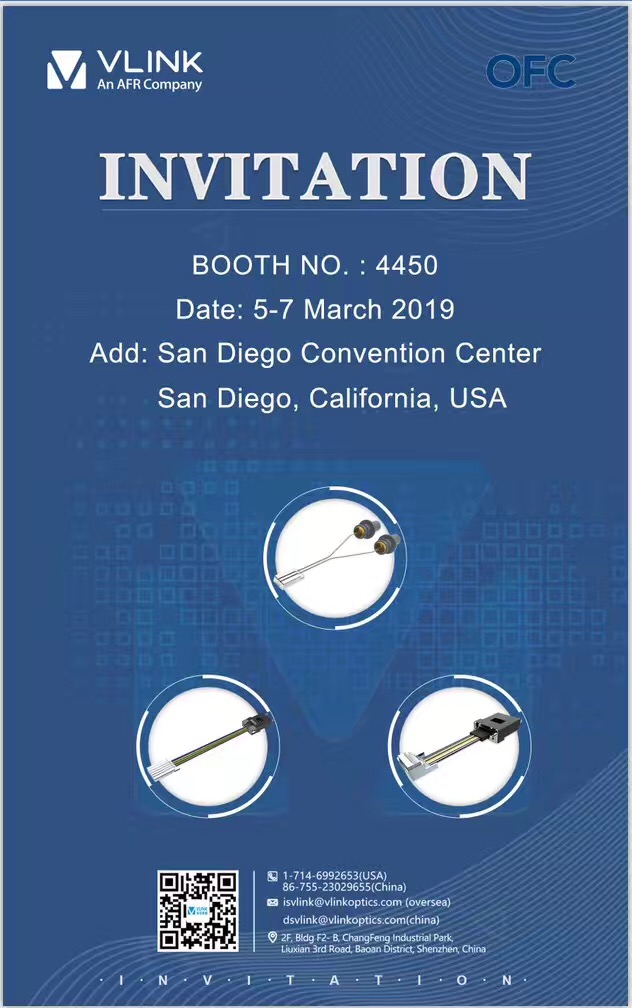 ICCSZ訊 美國當(dāng)?shù)貢r(shí)間3月5-7日,全球?qū)I(yè)性最強(qiáng)、影響力最大的光通信領(lǐng)域國際盛會——美國光纖通訊展覽會(OFC)即將在圣地亞哥會展中心舉行。光庫科技子公司深圳市加華微捷科技有限公司Vlink Optics將隆重亮相,展出高速光模塊配套微連接器產(chǎn)品,細(xì)分CWDM,sr4, psm4,應(yīng)用于100G/400G,展位號:4450歡迎光臨交流。