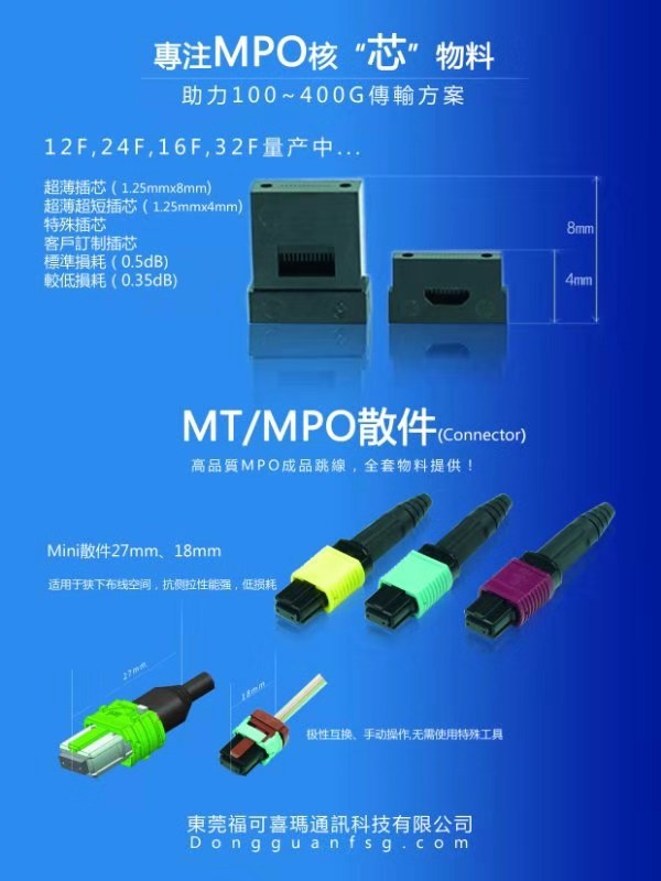 福可喜瑪于2014年11月開(kāi)始研發(fā)MT/MPO插芯,憑借優(yōu)秀的研發(fā)團(tuán)隊(duì)、豐富的行業(yè)經(jīng)驗(yàn)積累,不斷在技術(shù)、材料等方面進(jìn)行突破,目前已自主研發(fā)出MT/MPO