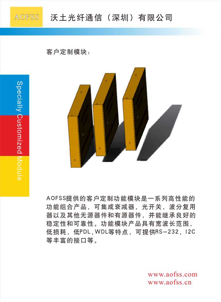 AOFSS/沃土總部位于深圳,公司主要專注于光纖傳感器元件和MEMS光學(xué)器件的研發(fā)和生產(chǎn),產(chǎn)品包括:法拉第旋轉(zhuǎn)鏡、光纖干涉儀、MEMS可變光衰減器、MEMS光開關(guān)等,應(yīng)用于電信和光纖傳感器行業(yè)。