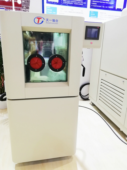 在現(xiàn)場,天一瑞合展出了TYCT-300芯片老化試驗(yàn)箱,該產(chǎn)品可以自動化進(jìn)行溫控測試,快速升降溫控制,支持APP遠(yuǎn)程控制測試和SATAI/II/III的測試。同時,產(chǎn)品箱內(nèi)風(fēng)速可以與溫度均衡,支持異常斷電測試和老化測試。