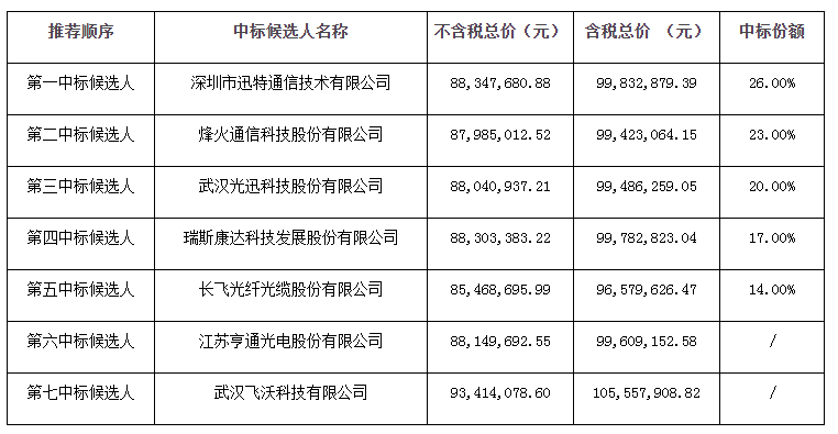 湖北移動(dòng)公示2020-2021年開(kāi)放式波分復(fù)用設(shè)備采購(gòu)項(xiàng)目中標(biāo)候選人名單,共有迅特通信、烽火通信、光迅科技、瑞斯康達(dá)、長(zhǎng)飛光纖光纜、亨通光電及飛沃科技等7家廠商上榜。