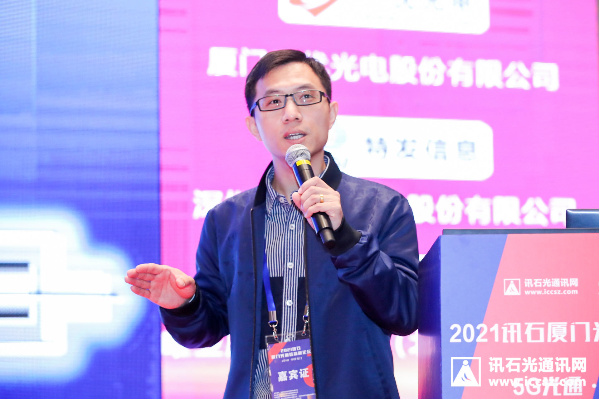 茶歇過后,迅特通信首席技術(shù)官魏志堅(jiān)從光模塊供應(yīng)商的角度,帶來了《應(yīng)對(duì)5G光通信網(wǎng)絡(luò)規(guī)模建設(shè)的挑戰(zhàn)——光模塊供應(yīng)商的思考》的主題演講,他表示2020年是迅特通信關(guān)鍵的一年,這一年,迅特通信在中國三大運(yùn)營商5G前傳無源波分省、直轄市級(jí)招標(biāo),集采招標(biāo)總第一,25G CWDM光模塊發(fā)貨量百萬只以上,25G無源波分產(chǎn)品細(xì)分市場份額第一。魏總介紹了迅特通信的WDM-Base 5G前傳光??旌蚖DM Based MUX/DEMUX Boxes等產(chǎn)品的特點(diǎn)。 迅特遠(yuǎn)端無源WDM設(shè)備,遠(yuǎn)端無源設(shè)備與AAU相連,AAU側(cè)使用CWDM彩光模塊,通過合分波器復(fù)用多個(gè)波長傳輸以節(jié)省光纖資源。適應(yīng)多場景安裝,提供室外掛墻、室外抱桿、室內(nèi)機(jī)架等多種設(shè)備形態(tài),采用防水防潮設(shè)計(jì);根據(jù)不同的業(yè)務(wù)需求,提供 6 波、12 波、18 波等多種容量設(shè)備,并支持 2G/4G/5G 業(yè)務(wù)混合傳輸。魏總分享了幾點(diǎn)迅特成功的心得,他表示,精準(zhǔn)把握客戶需求,持續(xù)、小步、快速的技術(shù)創(chuàng)新和產(chǎn)品迭代,堅(jiān)定執(zhí)行力和項(xiàng)目落地能力,適當(dāng)適時(shí)轉(zhuǎn)型贏得客戶認(rèn)可,在動(dòng)蕩不安的世界里對(duì)供應(yīng)鏈的把控,積極參與企標(biāo),行標(biāo)制定并實(shí)際性作出貢獻(xiàn)。下一步的發(fā)展是,構(gòu)建半有源Open-WDM/MWDM標(biāo)準(zhǔn)體系,國際標(biāo)準(zhǔn)化取得突破性進(jìn)展,國際市場,國產(chǎn)芯片、更開放的生態(tài)。最后,在越來越開放的光通信網(wǎng)絡(luò)中,成為大家長期可信賴的伙伴,一起共同成長。