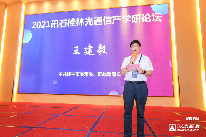5月28日下午,論壇開場由中共桂林市常委、統(tǒng)戰(zhàn)部部長王建毅致辭,他表示,桂林是廣西的老工業(yè)化基地,近年來推出了三年新型工業(yè)計劃,未來桂林工業(yè)發(fā)展機會巨大。本地企業(yè)不斷發(fā)展壯大,2020年桂林電子信息產業(yè)創(chuàng)造了78.86億元收入,同比增長130.33%。未來離不開光通信的發(fā)展,歡迎企業(yè)落戶桂林,支持桂林發(fā)展。