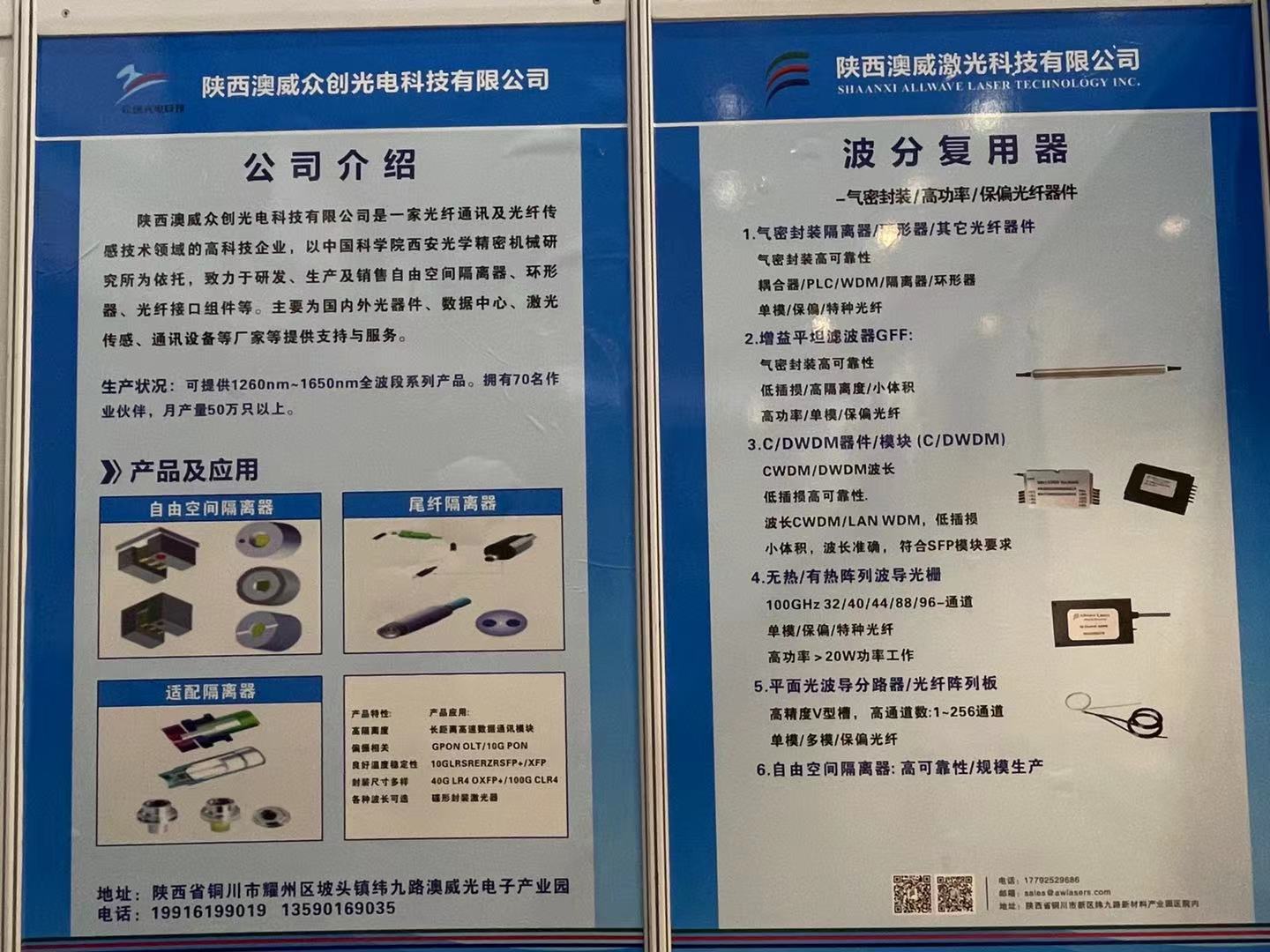 ICC訊 2021年9月16-18日,澳威激光參加中國國際光電博覽會(CIOE 2021)深圳國際會展中心(寶安新館)展位號2號館2D186-187,重點展示了多款激光器和被動光纖器件。