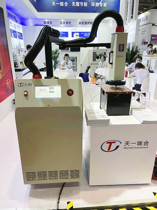 本次天一瑞合展出的這款TYST-600-80熱流儀/超快速冷熱沖擊試驗機(jī)廣泛應(yīng)用于5G通信、半導(dǎo)體芯片、傳感器等領(lǐng)域。溫度范圍可由-80°C到225°C,在最短的時間內(nèi)檢測樣品因高度溫冷熱沖擊所引起的化學(xué)變化和物理傷害,減少測試與驗證時間,快速提高產(chǎn)品研發(fā)和生產(chǎn)效率。